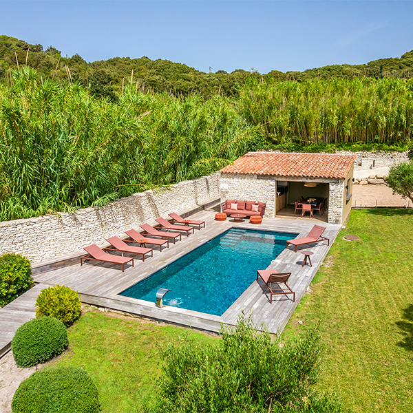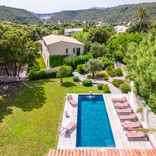 Idéalement située dans la vallée de Saint Julien, à proximité immédiate du port de Bonifacio, cette villa à la décoration chaleureuse & moderne vous accueille de juin à octobre pour des vacances de rêve en famille ou entre amis.